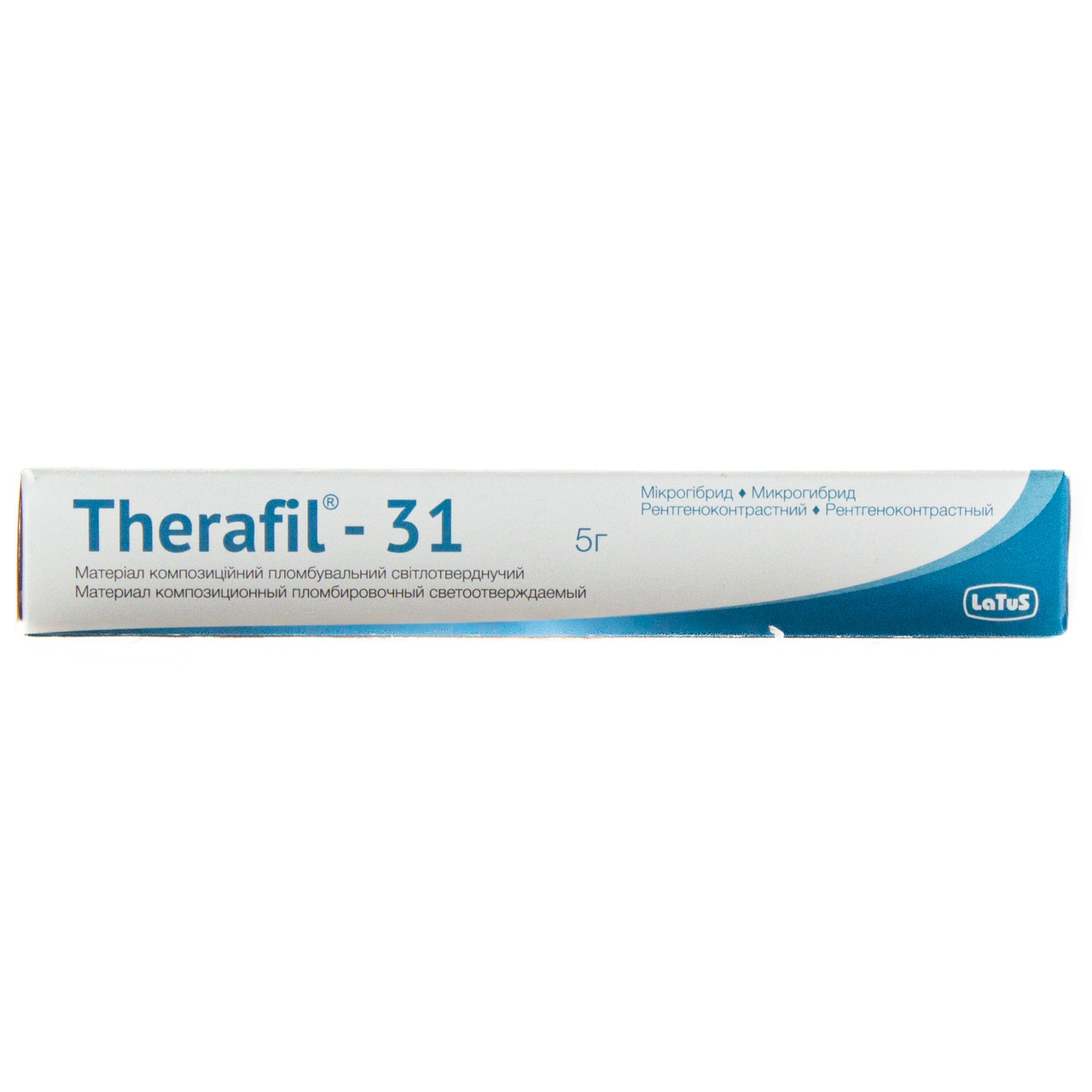 Therafil-31 представлявляє собою високонаповнений мікрогібридний композит, що твердне за допомогою фотополімеризатора. Глибина твердіння протягом 40 секунд складає не менш 3,5 мм. Пломби з Therafil-31 характеризуються зниженим усадочним стресом, високою твердістю та стійкістю до зношення, оптимальною прозорістю, гарною кольоростабільністю.