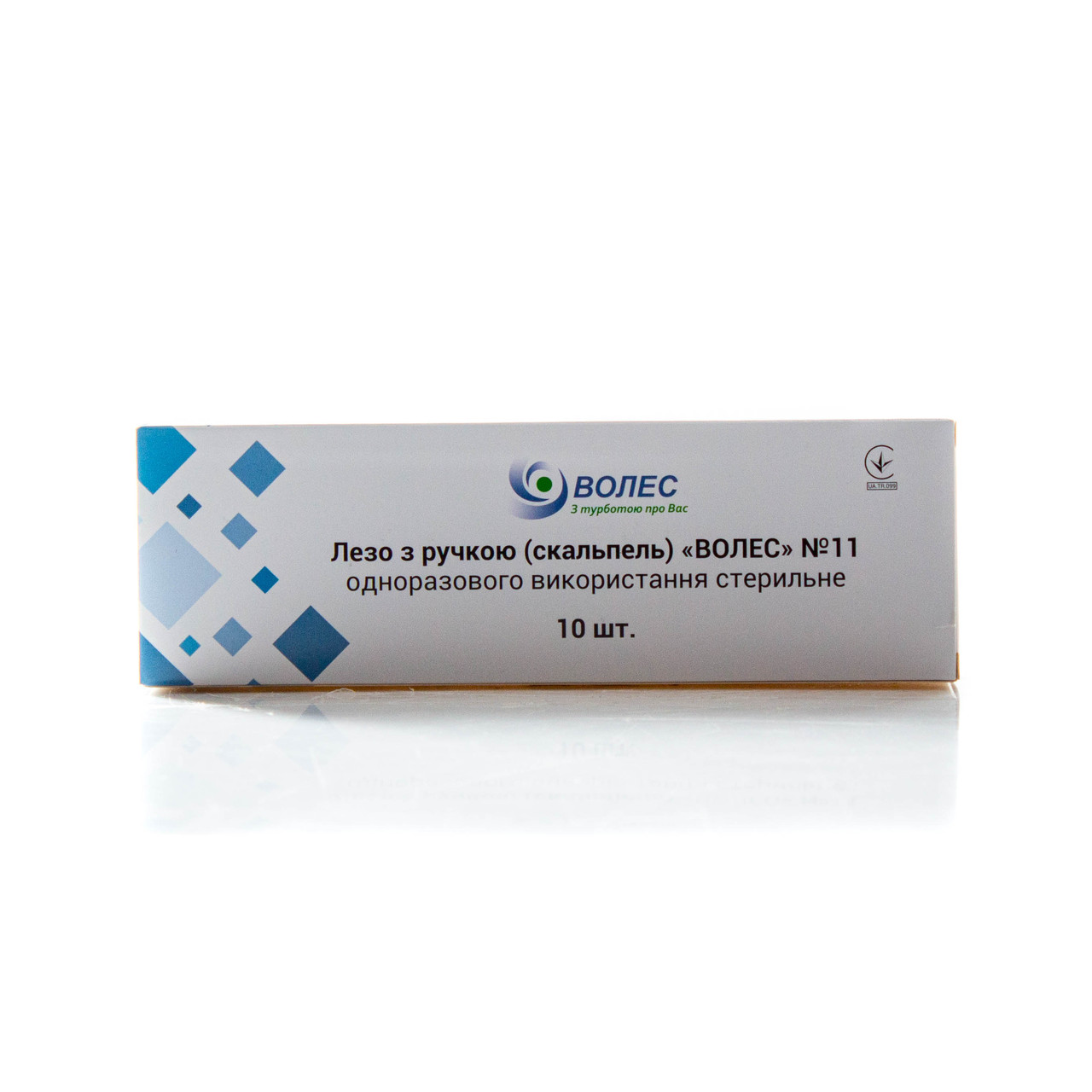 Скальпель (лезо з ручкою) "ВОЛЕС" №11 (в індивідуальній упаковці, стерильний) 10 шт./уп.